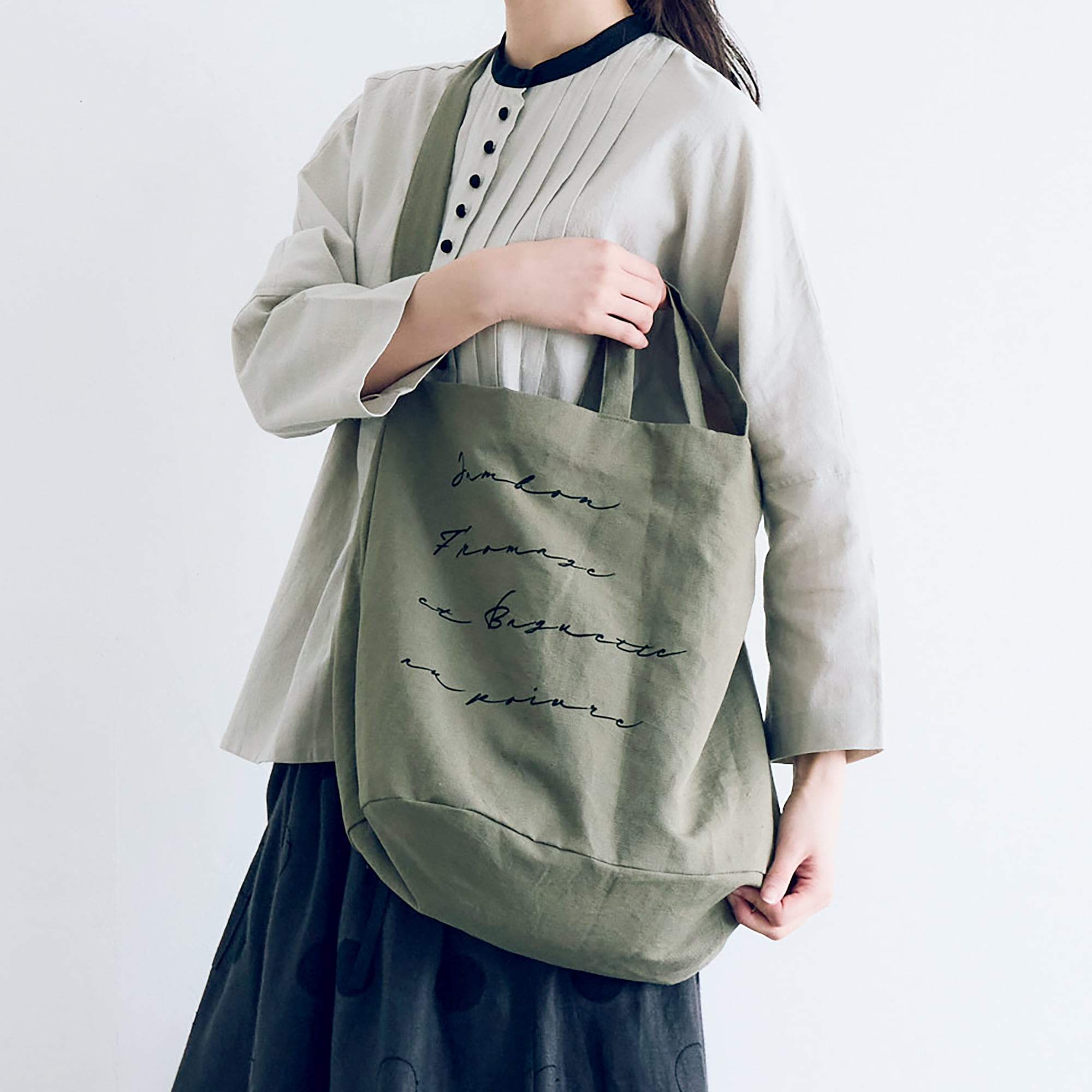 心地よいテラスでいただく朝食をイメージしたフランス語がプリントされています。