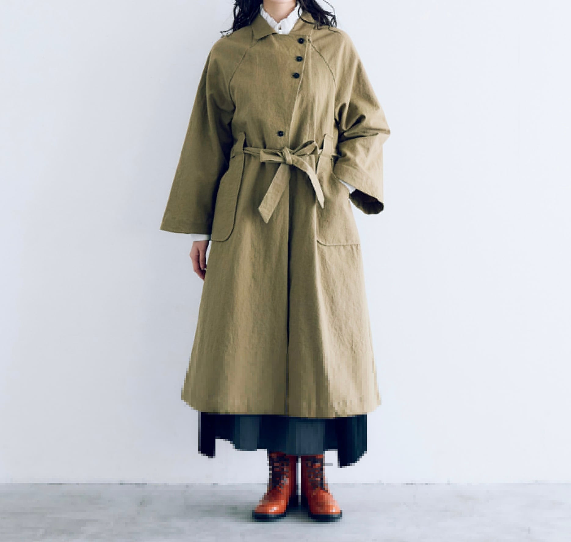 MAGALI コットンリネンアンティークキャンバストレンチコート/カーキ