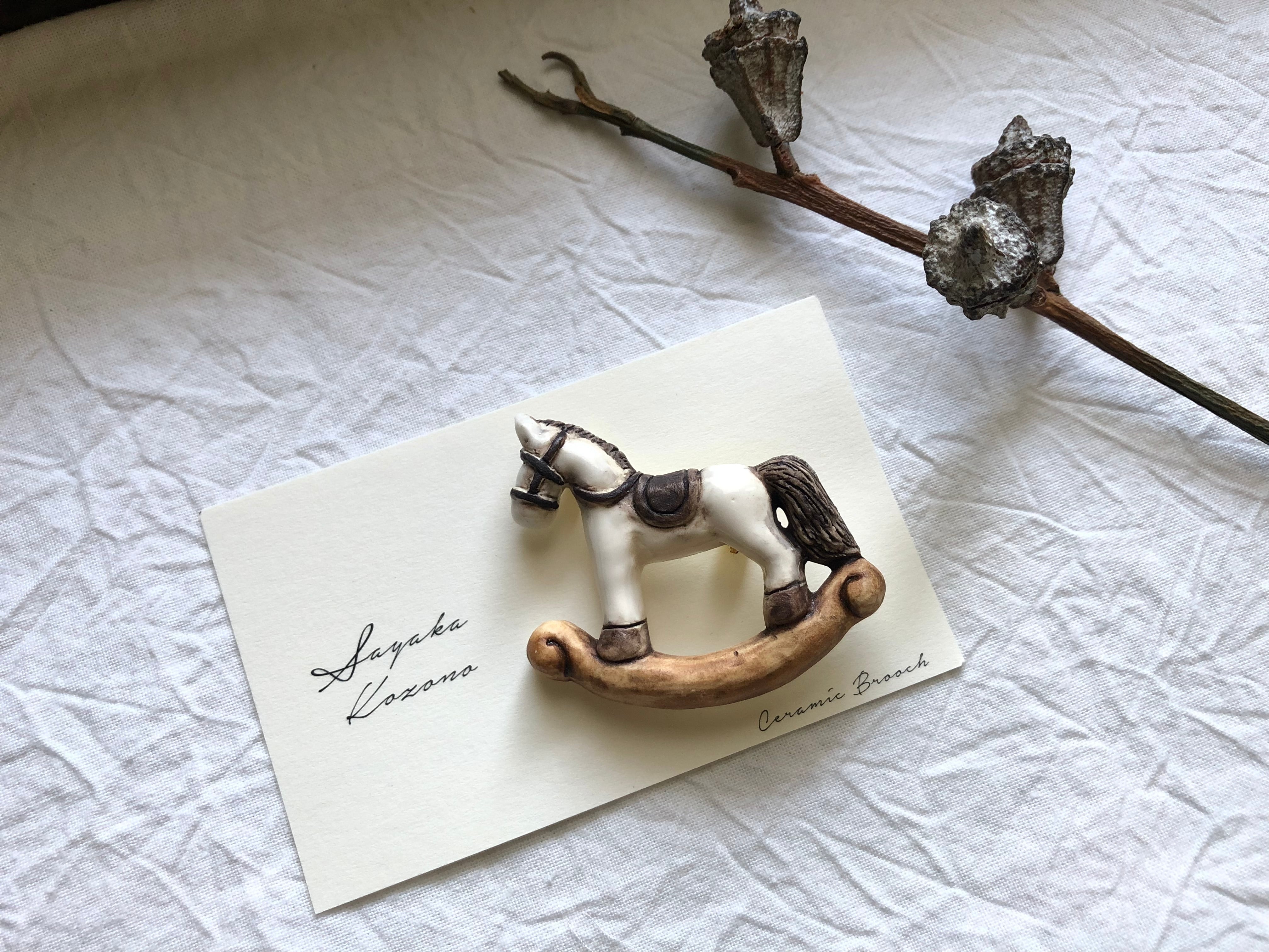 小園さやか ブローチ1.ゆらゆら木馬 茶