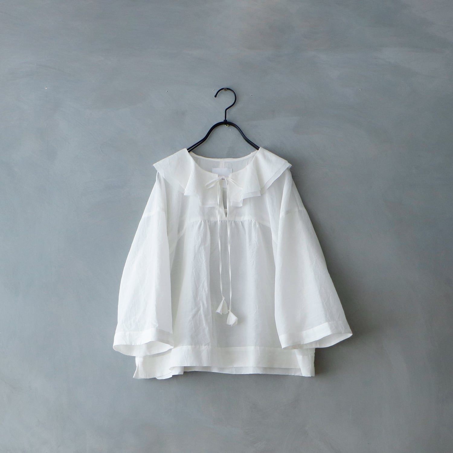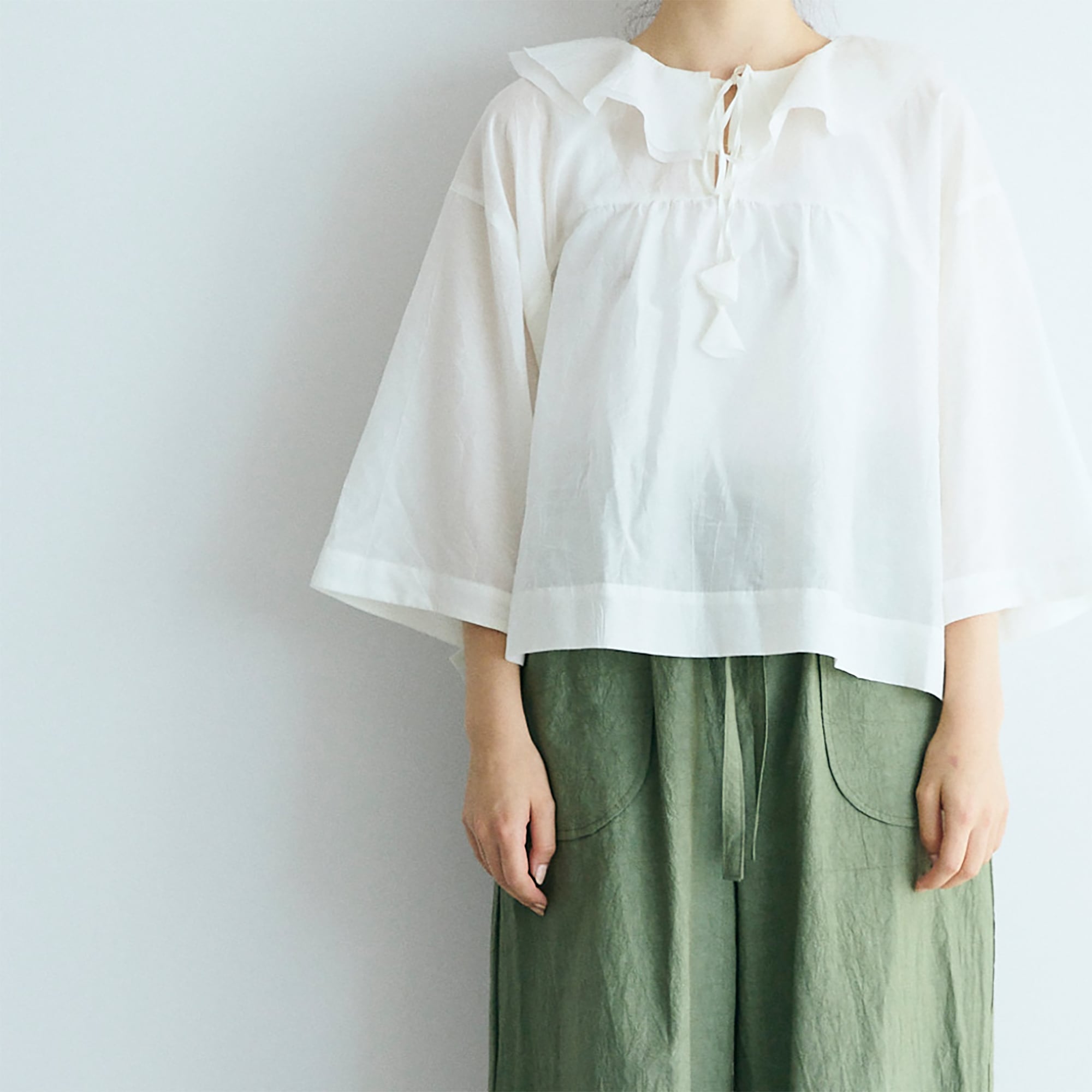 MAGALI コットンシルクブレイドフリルカラーブラウス/オフホワイト