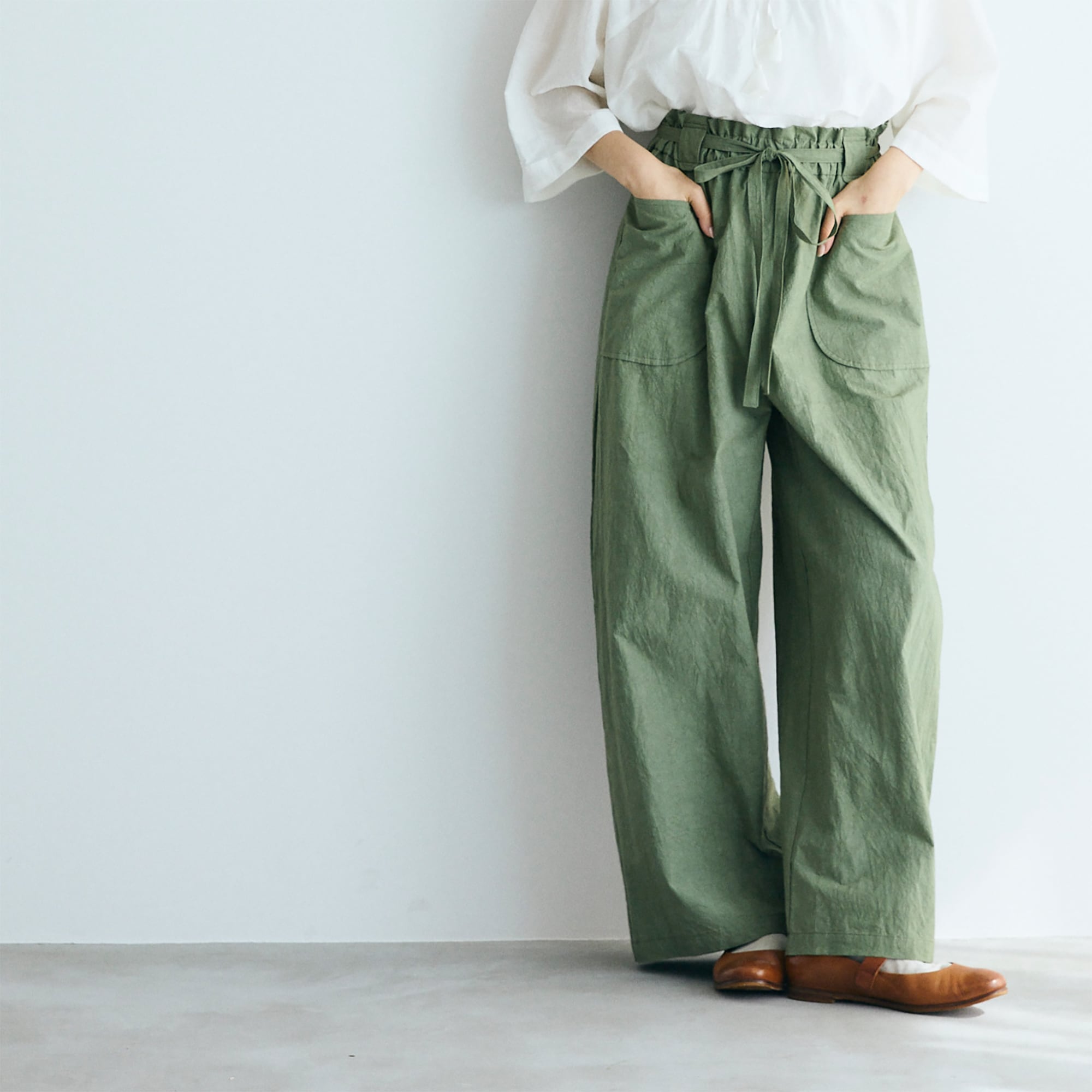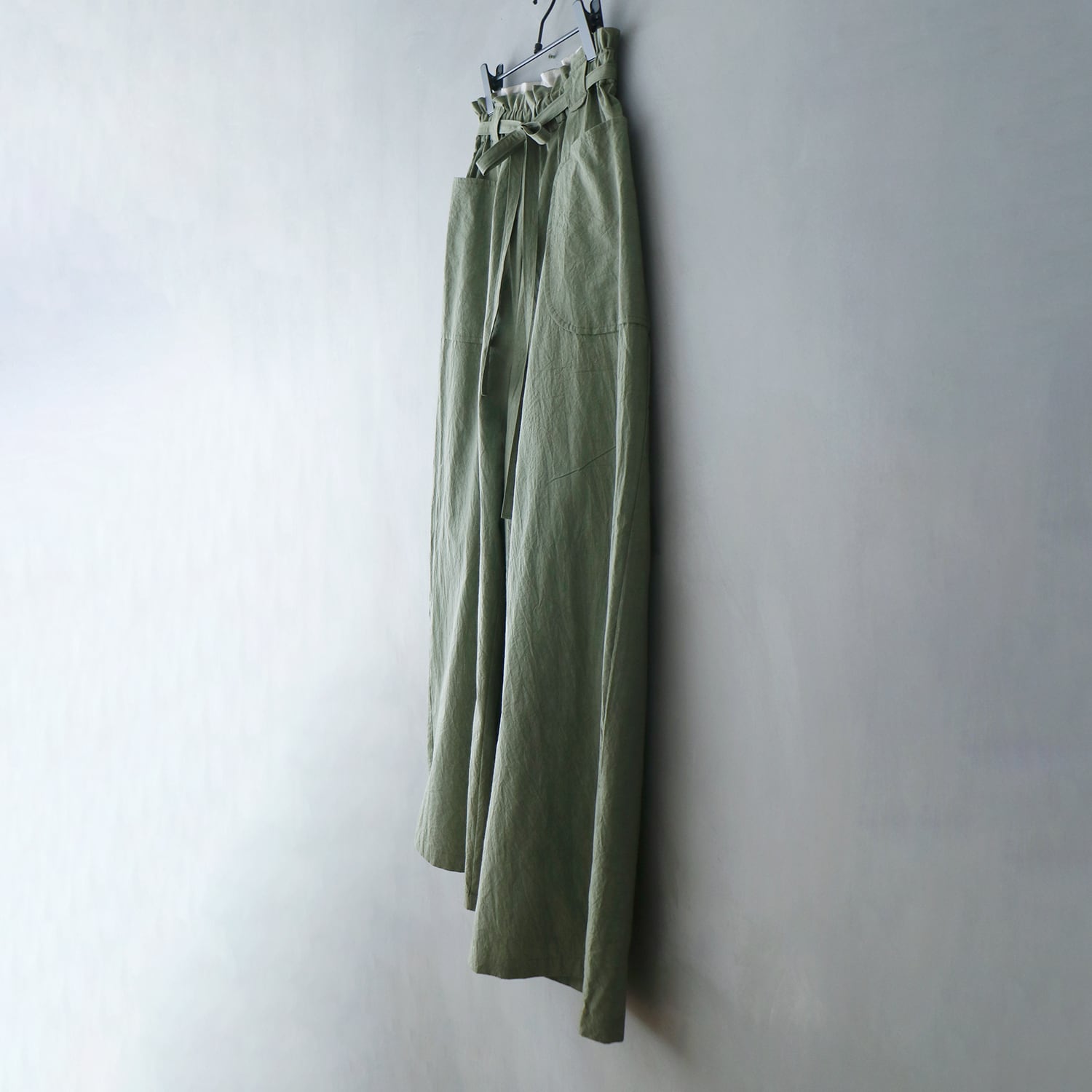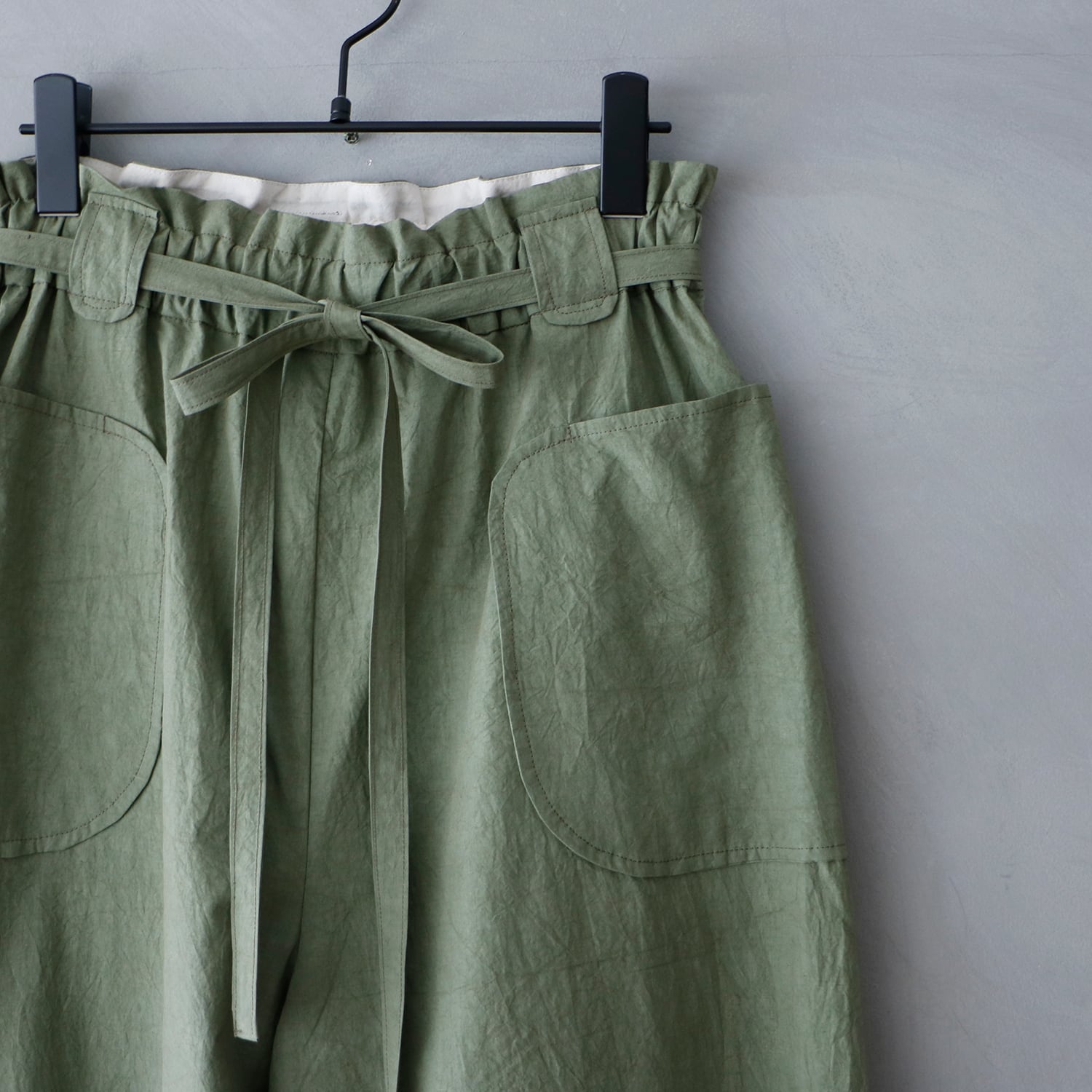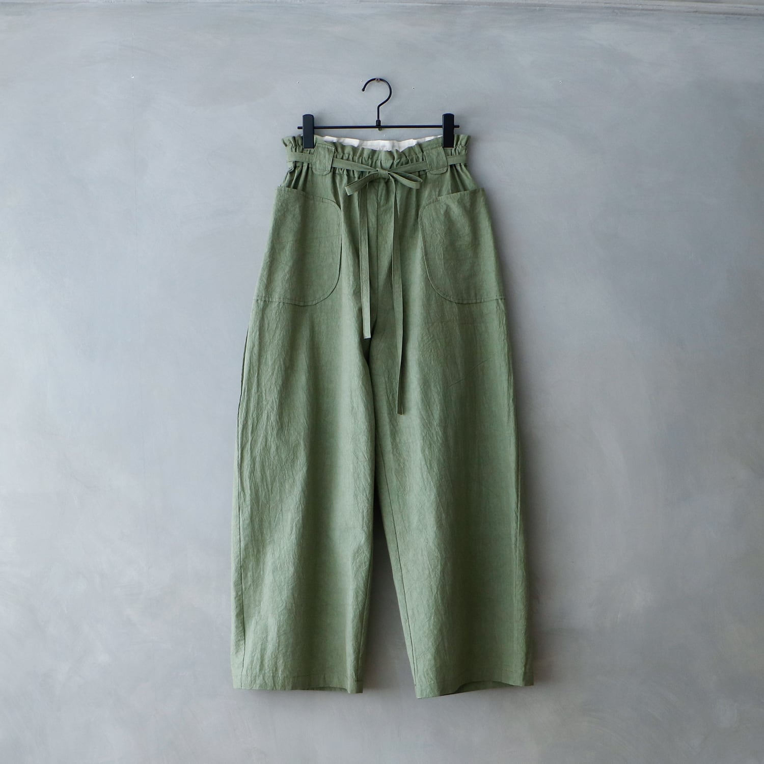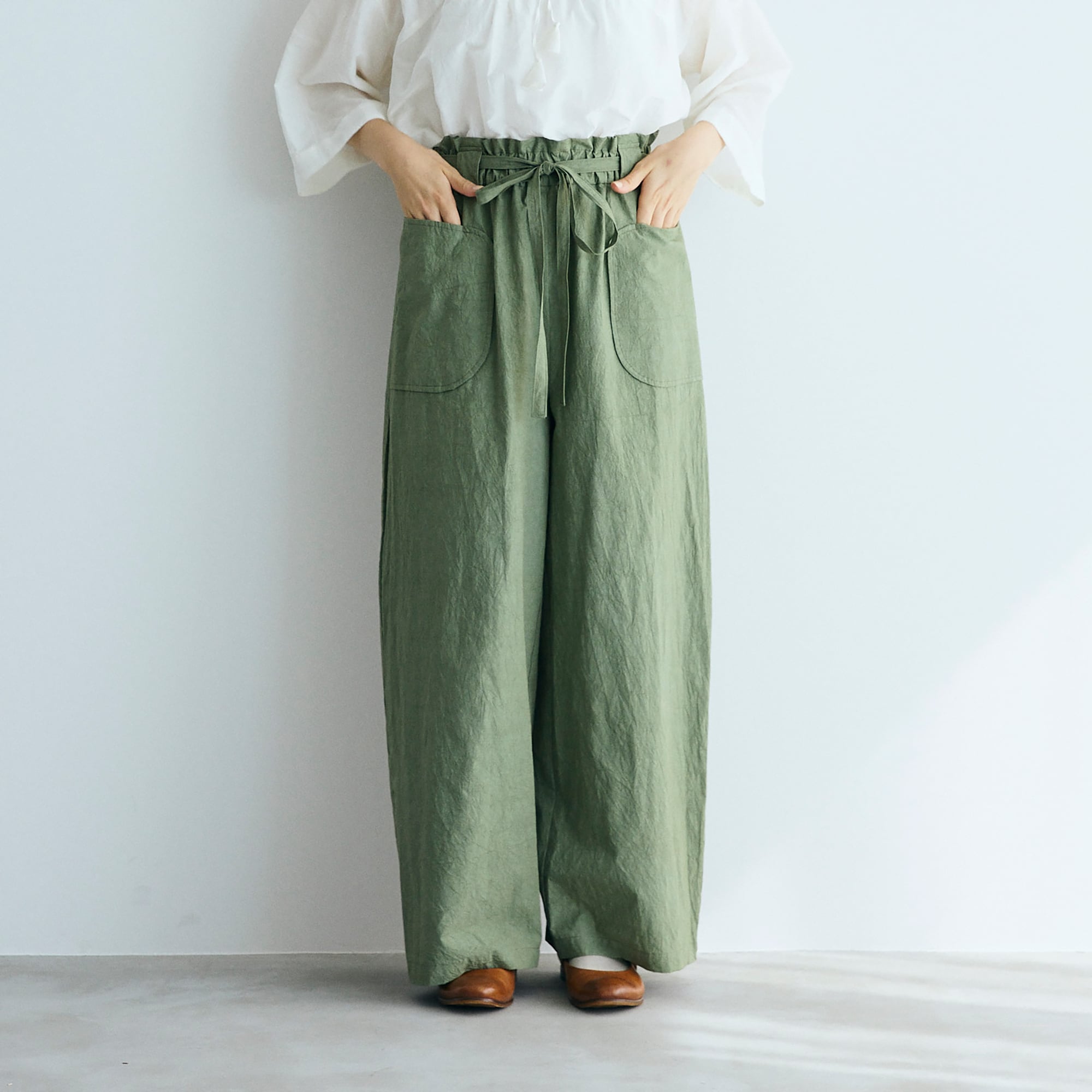 MAGALI コットンリネンファナージュロングパンツ/カーキ