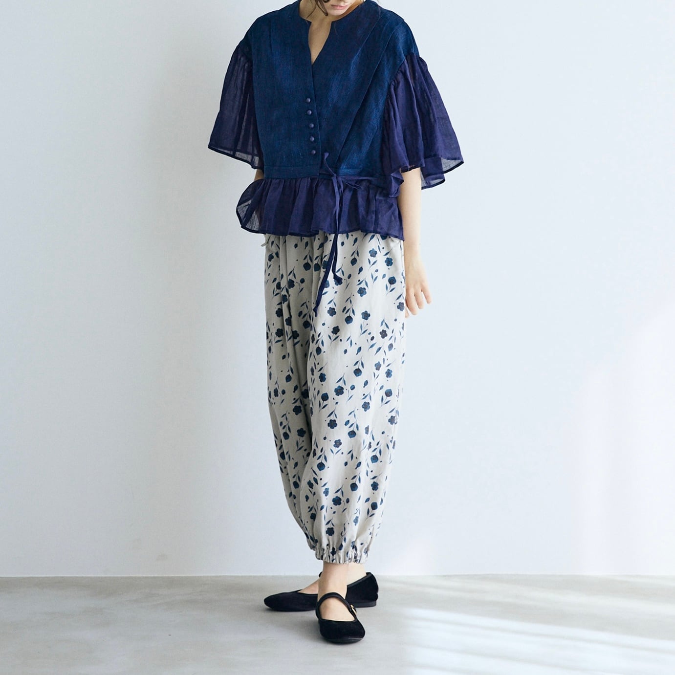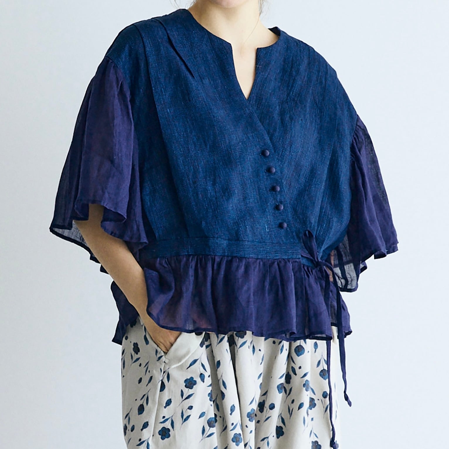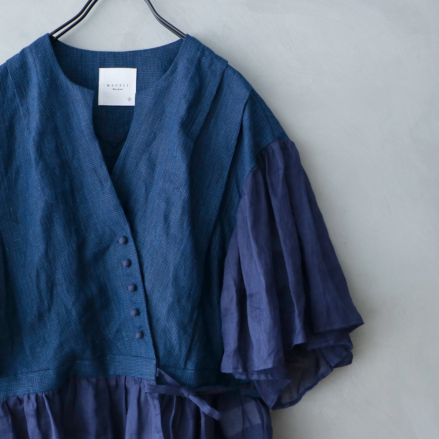 MAGALI インディゴリネンカシュクールブラウス / ネイビー