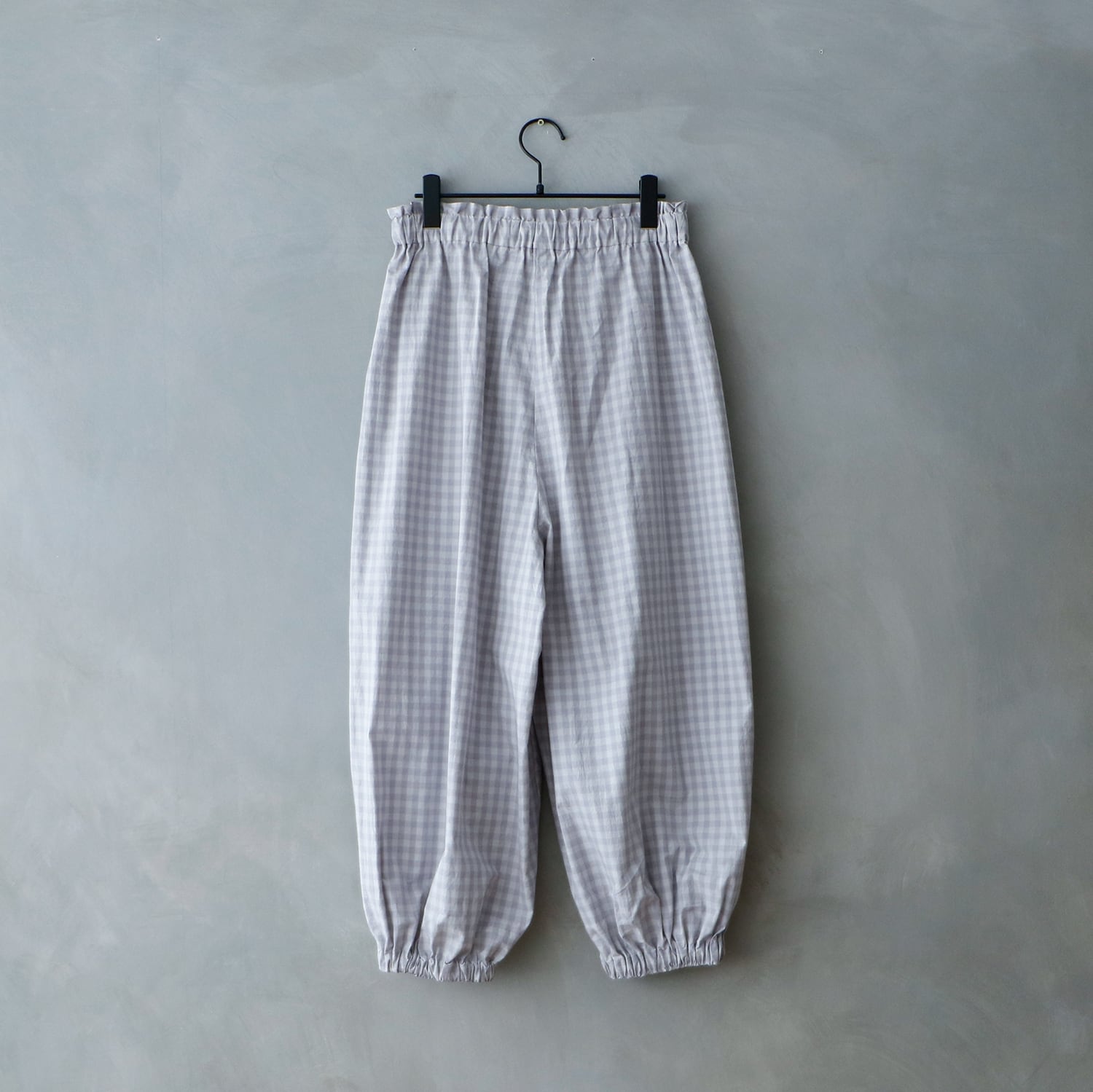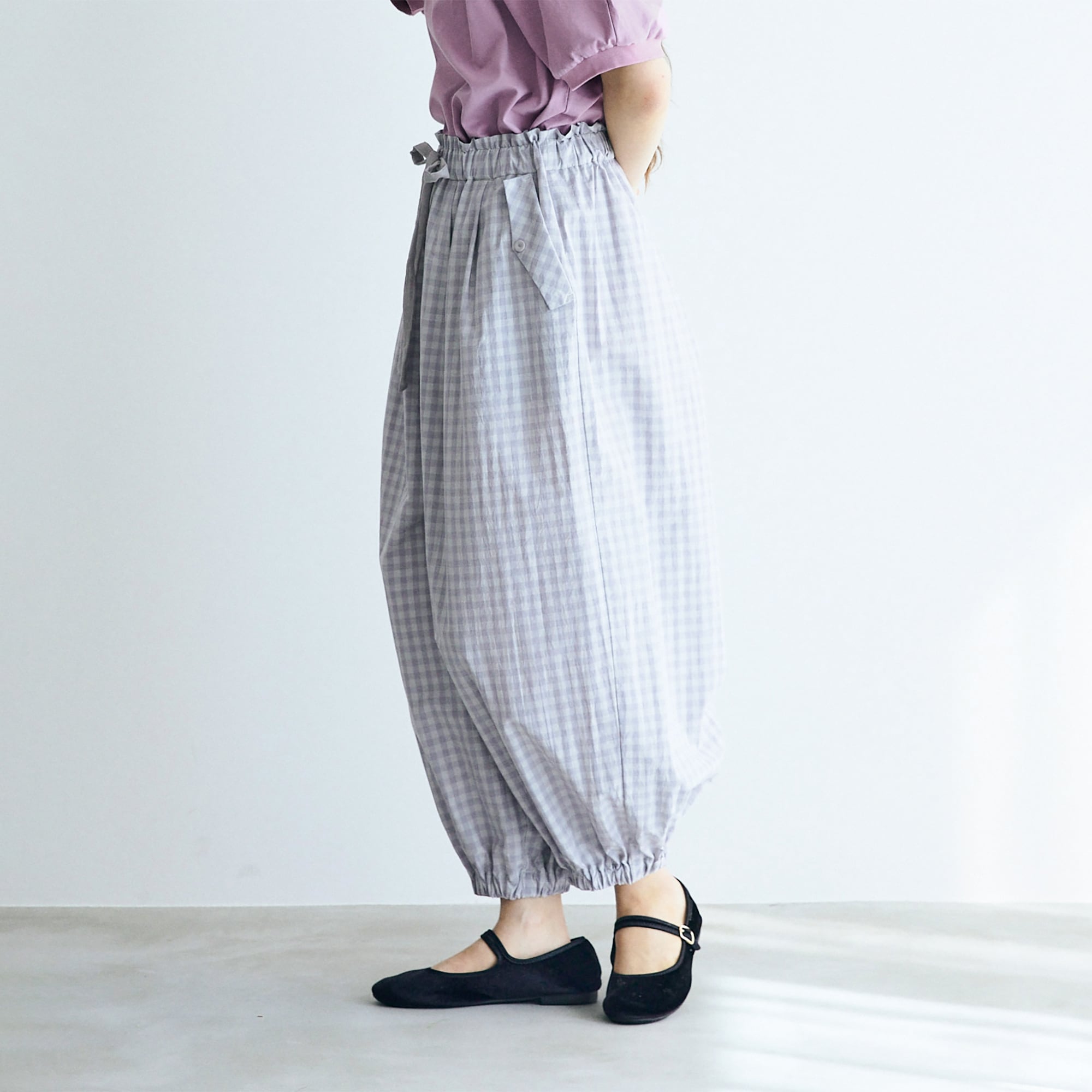 ウォッシュドコットンバルーンギャザーパンツ/ギンガムグレイ